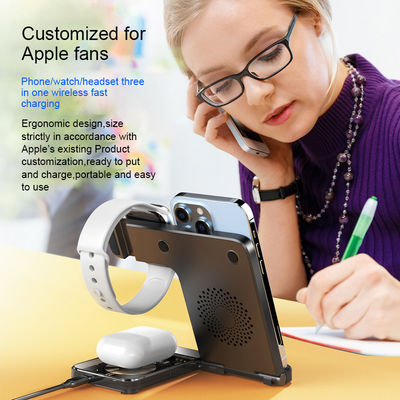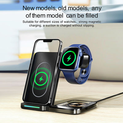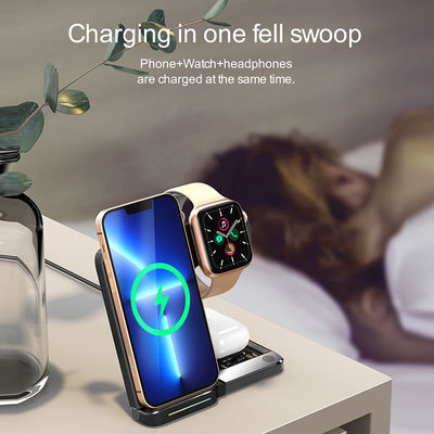 আইফোনের জন্য 3 ইন 1 ওয়্যারলেস চার্জিং স্টেশন স্যামসাং এয়ারপডস চার্জ 5 ভি / 3 এ 9 ভি / 2 এ এবিএস পিসি টাইপ সি ক্যাবল অন্তর্ভুক্ত