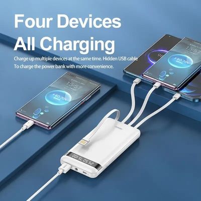 বিল্ট ইন ক্যাবল পাওয়ার ব্যাংক একটি মসৃণ এবং কম্প্যাক্ট বাক্সে আসে যা অন্তর্ভুক্ত করেঃ